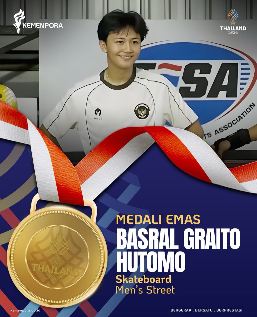 TANGERANG,beritahariini.id – Atlet skateboard andalan Indonesia, Basral Graito Hutomo, berhasil menyabet medali emas dalam nomor skateboard street putra pada ajang SEA Games Thailand 2025. Kemenangan dramatis ini diraih Basral di…