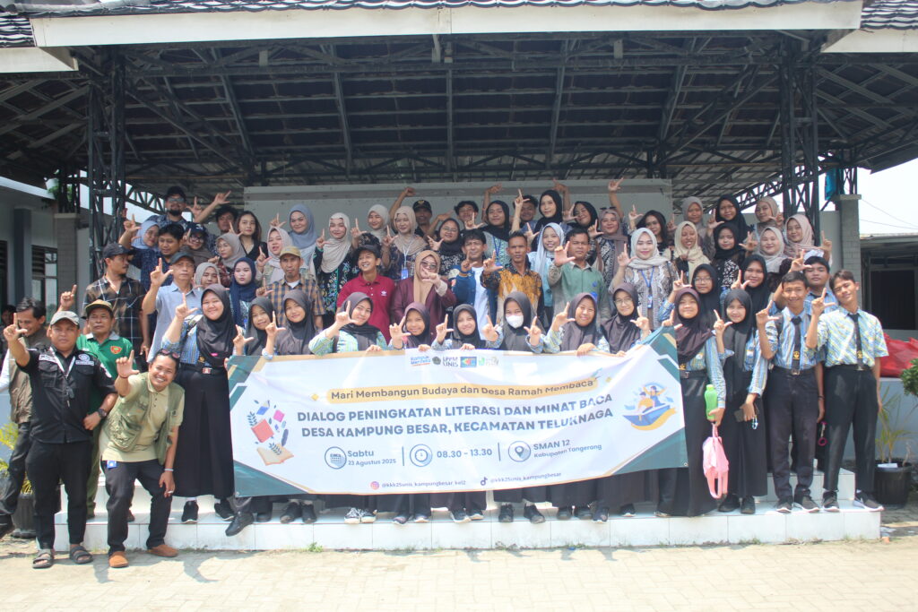 TANGERANG – Mahasiswa Universitas Islam Syekh-Yusuf (Unis) Tangerang Kelompok 2 Kuliah Kerja Kemasyarakatan (KKK) 2025, menggelar Dialog Peningkatan Literasi dan Minat Baca di SMAN 12 Kabupaten Tangerang, Sabtu (23/8/2025). Dalam kesempatan tersebut, mereka juga melakukan peresmian Taman Baca Masyarakat (TBM) di Desa Kampung Besar Teluknaga, yang diberinama Taman Literasi Ceria. “Kegiatan ini lahir dari keprihatinan mahasiswa terhadap rendahnya minat baca dan semangat untuk melanjutkan pendidikan di masyarakat. Lewat dialog ini, kami ingin mencari solusi bersama agar budaya literasi bisa tumbuh, terutama di lingkungan keluarga dan masyarakat desa,” ujar Aini Rahayu, Ketua Pelaksana kegiatan.